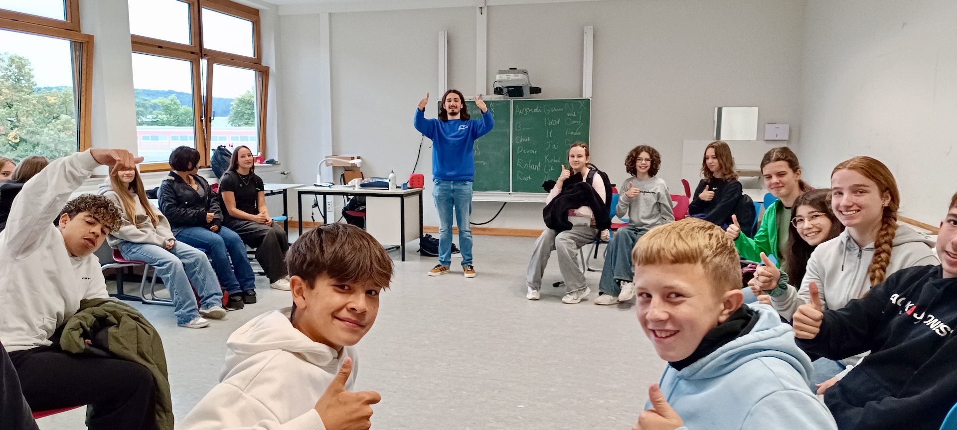 Unsere Schüler:innen der 6., 7. und 9. Klassen Französisch durften am 25.09.2025 Blaise Tesson vom Institut francais empfangen!