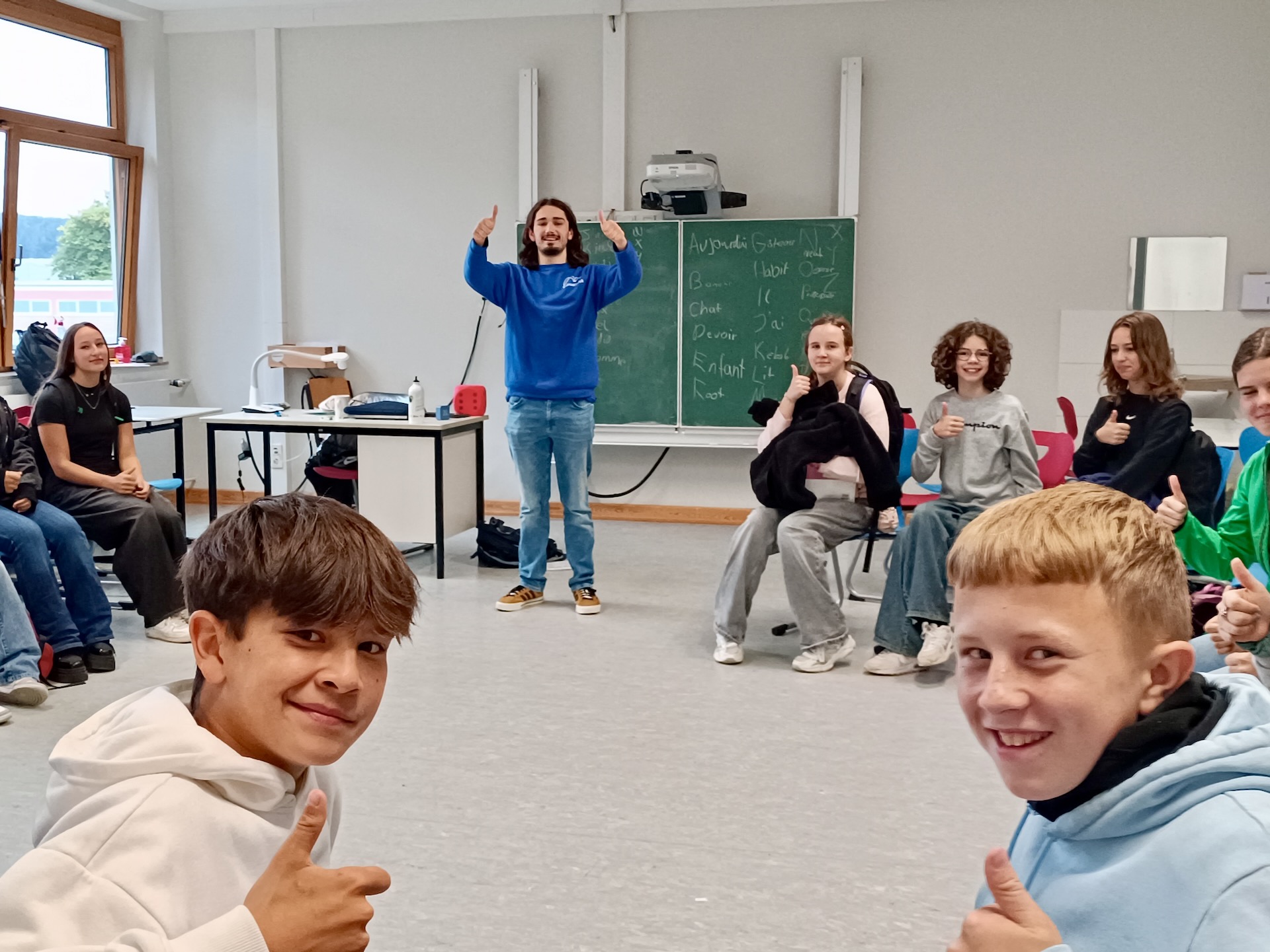 Mit einfachen und leicht verständlichen Worten schaffte es der Lektor, unsere Schüler:innen auf sympathische und erfrischende Art dazu zu animieren, Französisch zu sprechen und Vertrauen in sich und die eigenen Sprachkenntnisse zu wecken!