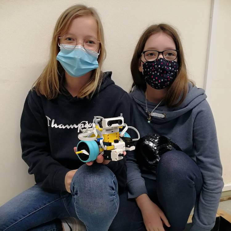 Schülerinnen und Schüler der Robotik AG testen neue LEGO® Roboter