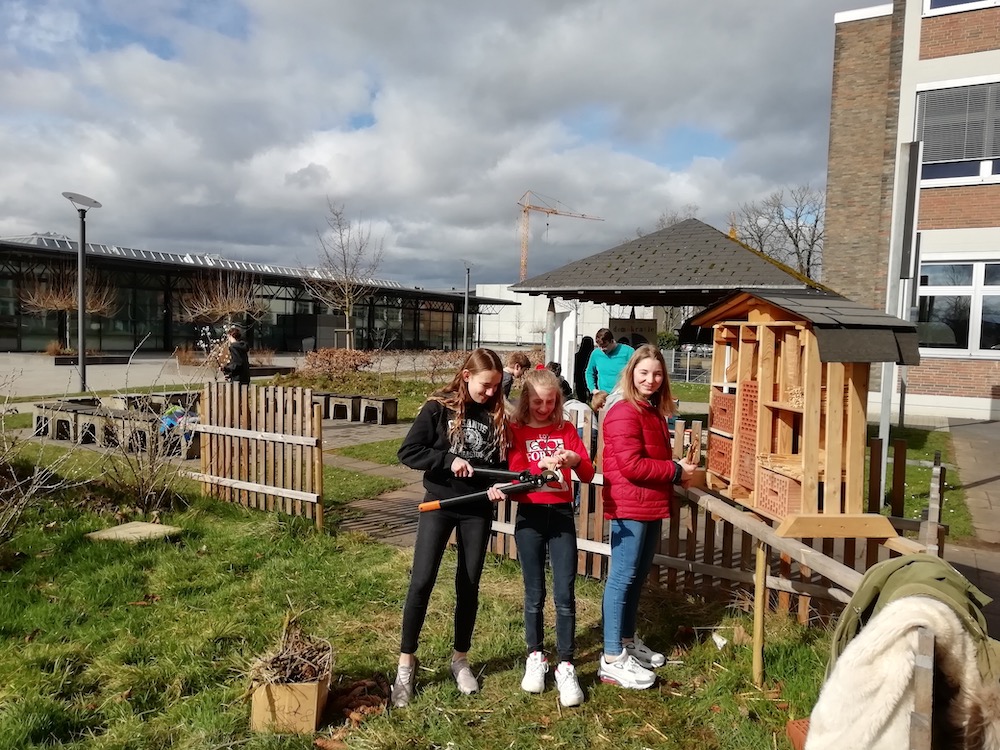 Die Klasse 7a baut Nisthilfen für Insekten