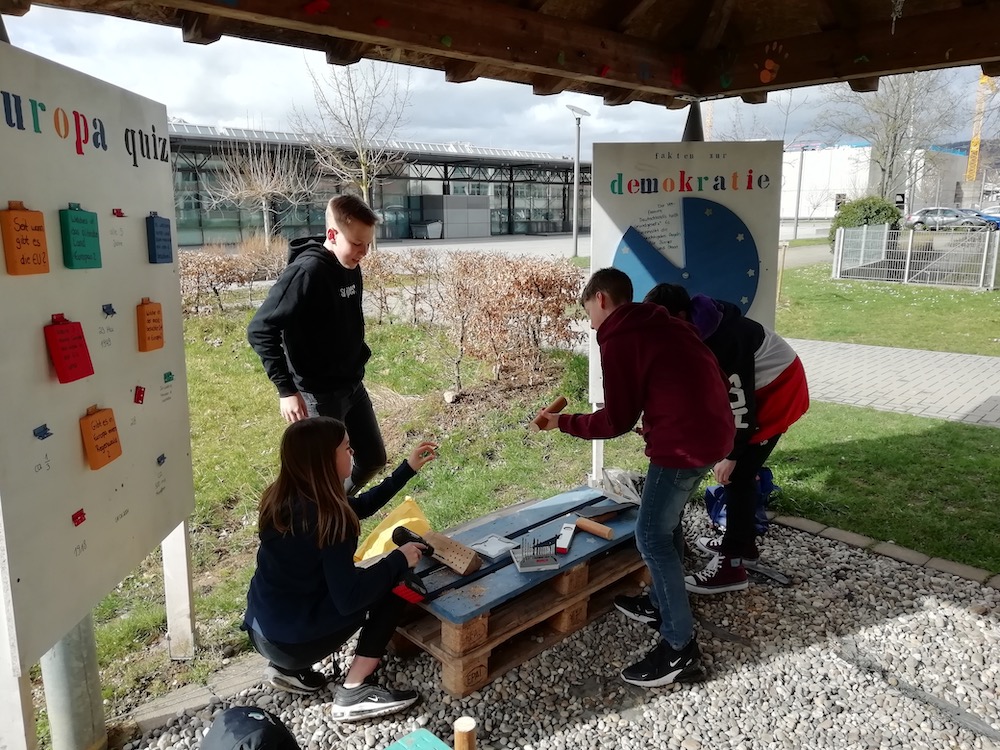 Die Klasse 7a baut Nisthilfen für Insekten