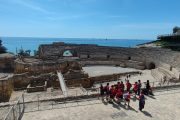 In Gandesa wurde die Schülergruppe sehr herzlich von ihren Austauschschülern*innen und deren Familien am folgenden Tag begrüßt. Vielseitig und abwechslungsreich war das Programm, das die spanischen Lehrkräfte für die Gruppe zusammengestellt hatten: Nach einem Stadtrundgang am ersten Tag durch Gandesa und dem Besuch der von einem Schüler Gaudís im modernistischen Stil erbauten „Bodega Cooperativa de Gandesa“, einem Wahrzeichen der Stadt, ging es am zweiten Tag nach Tarragona. Hier erkundete die Gruppe bei schönstem Wetter das römische Erbe der Hafenstadt: den archäologischen Komplex Tàrraco mit einem beeindruckenden Amphitheater direkt am Meer gelegen und mit einer weltweit am besten erhaltenen römischen Wagenrennbahn (Circ Romà) aus dem 1. Jahrhundert n. Chr..