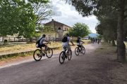 Auf der „Via verde de la Terra Alta“, einem Bahntrassenradweg, radelte die Schülergruppe am folgenden Tag – gut ausgestattet mit stylischen Mountainbikes. Kleine Stopps ermöglichten immer wieder herrliche Ausblicke in die wunderschöne Berglandschaft der „Terra Alta“, die der zweitlängste Fluss Spaniens, der Ebro, über Jahrhunderte prägte. Viele Tunnels und Viadukte machten das Radeln zum Erlebnis.